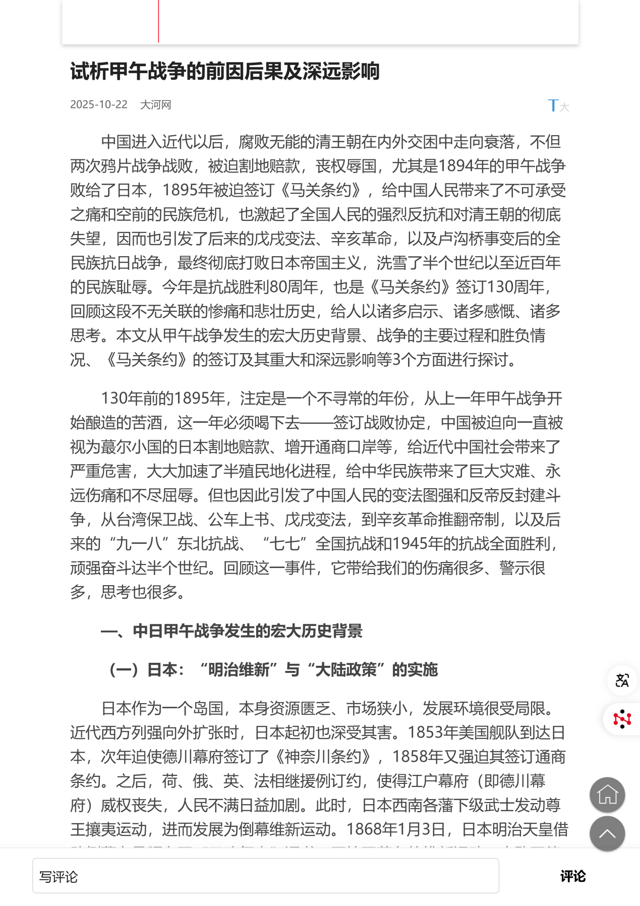 回顾甲午战争的历史,不仅是为了铭记伤痛,更是为了汲取“落后就要挨打”的深刻教训,激励当代国人坚定民族自信,推进国家现代化建设,实现中华民族的伟大复兴。该文的发表,展现了我校中原学研究院在相关领域的持续研究积累,其学术观点引发了我校全校师生的积极思考与讨论。