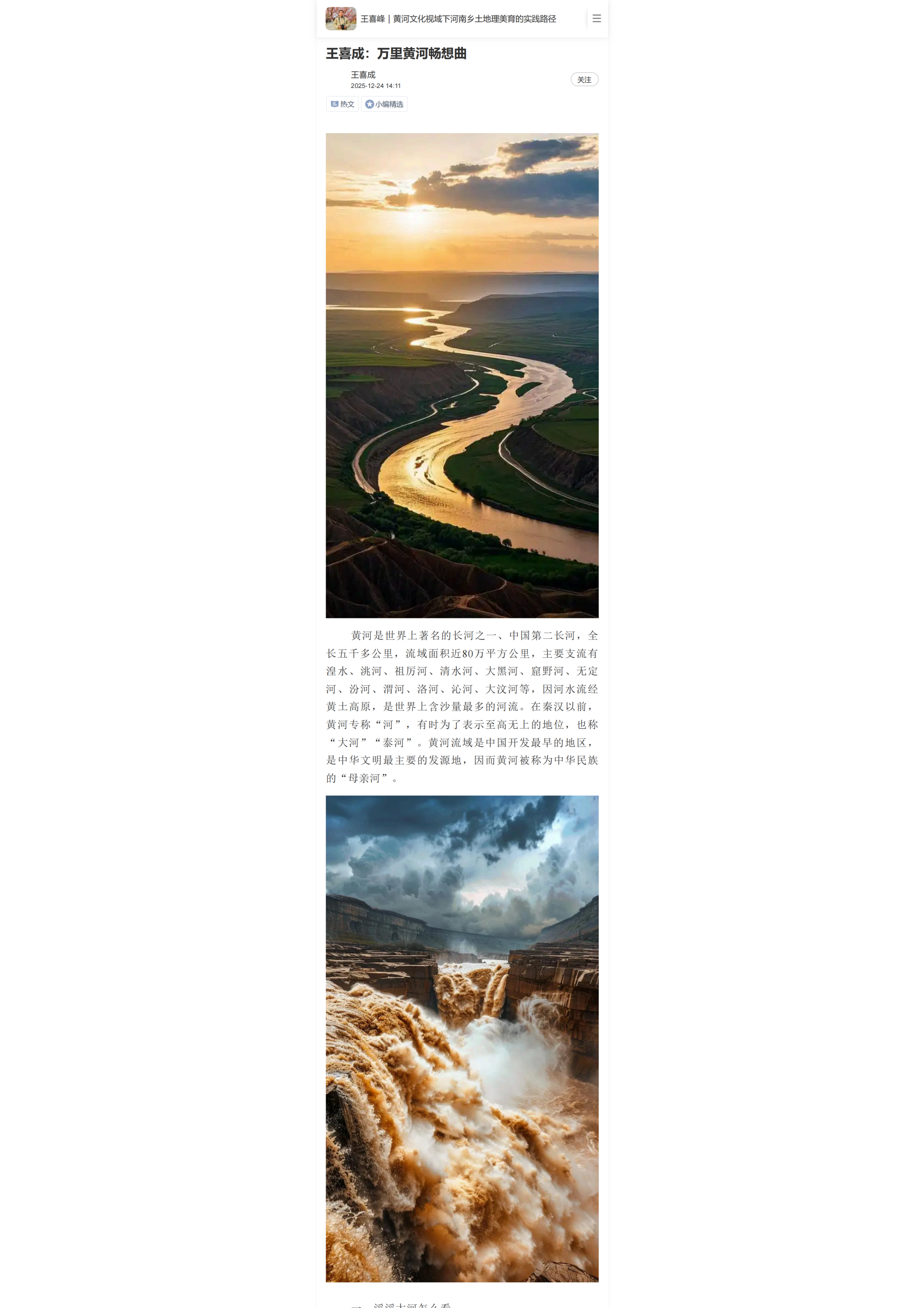 我校中原学研究院院长王喜成在“顶端新闻”发表《万里黄河畅想曲》
